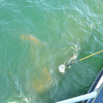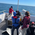 In amongst the whales, we also found a lost crab pot, which occurred during our previous surveys in the GSL (and happened a handful more times throughout the summer). Fishing gear is considered “lost” when it still has a floating buoy attached, but is found after the fishing season has ended and all fishers have retrieved their gear. Gear can be lost during the fishing season and fishers are required to report it. In speaking with fishers, we have learned that hundreds of crab pots are reported as lost every year in the GSL, so every one that we find is important to remove from the water column to prevent a whale entanglement. Luckily, we do our research on a crab vessel, so we have the capability to haul gear as long as our captain gets approval from the Department of Fisheries and Oceans Canada. On this particular day, a colleague out on a different crab vessel was able to get approval and haul the gear we found. It seems like such a small action, but every lost pot recovered is one less potential entanglement and it is really great to know we are doing something tangibly important to actively protect right whales.