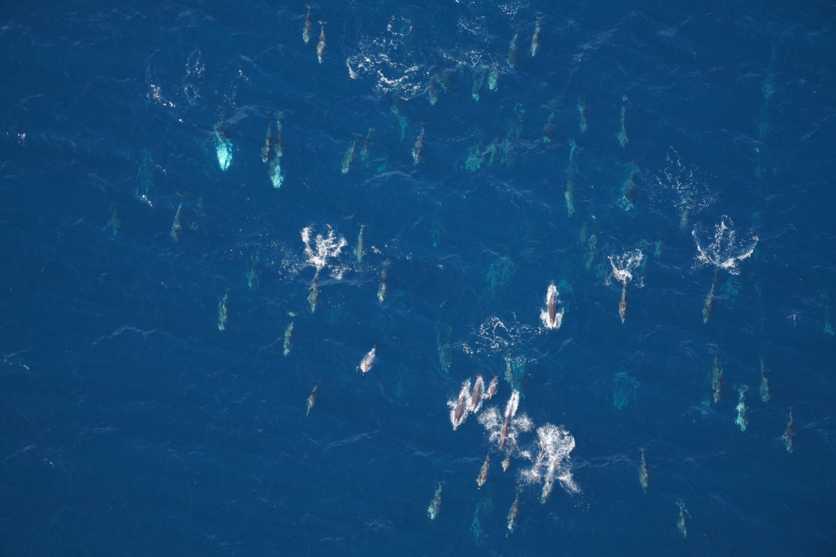 Some of the many dolphins we spotted on the survey, including bottlenose dolphins, common dolphins, striped dolphins, and pilot whales.