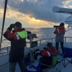 There are pros and cons to using a smaller boat. Pros: You can go faster and have more maneuverability around whales. Cons: You can’t handle higher sea states, and you can’t stay out overnight. Because the majority of right whales are still aggregating farther offshore in Bradelle Valley (~80 nautical miles), as opposed to the closer Shediac Valley (~40 nautical miles), the small boat can feel limiting.
