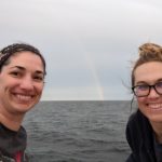 Two researchers from our right whale team (Kelsey + Amy!) were in Canada at sea aboard the vessel Jean-Denis Martin in July. Their research examined all aspects of this incredibly important right whale habitat, including photo identifications, health and behavioral assessments, biopsy and fecal sampling, plankton and oceanographic sampling, and drone imagery.