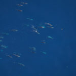 By the end of the first survey track line in the Monument, we had already seen several offshore species we don’t typically see closer to shore: striped dolphins (Stenella coeruleoalba)—many with calves, groups of pilot whales (Globicephala sp.), Risso’s dolphins (Grampus griseus), and even a fever of Chilean devil rays (Mobula tarapacana). I didn’t know that a group of rays is called a “fever” until this survey! The majority of these species are typically considered offshore or open-water species, and thus fall into the realm of species that I don’t typically see as an aerial observer that usually flies nearshore surveys. Seeing them on our survey was genuinely thrilling.
