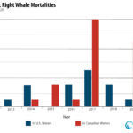 During that same time period (2017-2020), only 22 right whale calves were born. Mortalities outpace births 3:2.