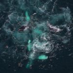This year, we first documented an aggregation of humpbacks bubble feeding in late May that was 46 miles south of Martha’s Vineyard near the New York shipping lanes. This aggregation continuously shifted northwards in June and also grew in size to over 20 individuals including several mother and calf pairs! Bubble-feeding continued during our July surveys, and we were constantly left guessing where the whales would be as they shifted location. Stay tuned for more aerial survey updates!