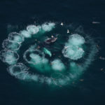 In New England, especially during the summertime, humpback whales are well-known for bubble-feeding   a technique in which they exhale a circular net of bubbles to corral their prey (small fish) inside. This allows the humpbacks to then swim up to the surface with their mouths open through the bubble net and consume the concentrated prey caught within the circle of bubbles. Over the last few years, we have seen bubble-feeding in our survey area mostly during late spring and summer.