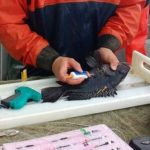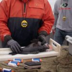 Working with a team of researchers led by Dr. Douglas Zemeckis of Rutgers University, Anderson Cabot Center scientists helped conduct a tagging study off the coast of New Jersey to better understand the impacts of pressure-related injuries – known as barotrauma – on black sea bass survival following catch and release by recreational anglers in 150 to 220 foot depths. The team found that 95% of the black sea bass captured in these deep waters experienced some form of barotrauma, including swim bladder expansion and stomach eversion, which was the primary cause of death after release. Fortunately, the team also found that puncturing the swim bladder with a small hypodermic needle to release expanded gases – a process known as ‘venting’ – not only allowed released black sea bass to swim back down to the bottom, but also increased the chance of survival from 50% to 80%!