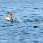Seabirds have a variable diet, ranging from plankton to crustaceans and fish. While scouting meals some barely break the water’s surface, but several are actually great swimmers. For example, Northern Gannets are spectacular diving birds. They can spot a fish from several hundred feet in the air—they fold their wings in tight—and dive straight down, entering the water like an Olympic diver, with barely a splash. Their underwater abilities are also impressive, many can swim more than 50 feet beneath the surface. Some, like jaegers and skuas enjoy letting others do all the work. These parasitic seabirds will chase other birds until they regurgitate their recent catch.